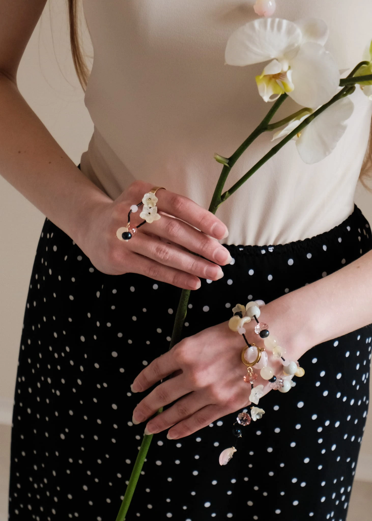 stal chirurgiczna, szkło, perła naturalna czarna