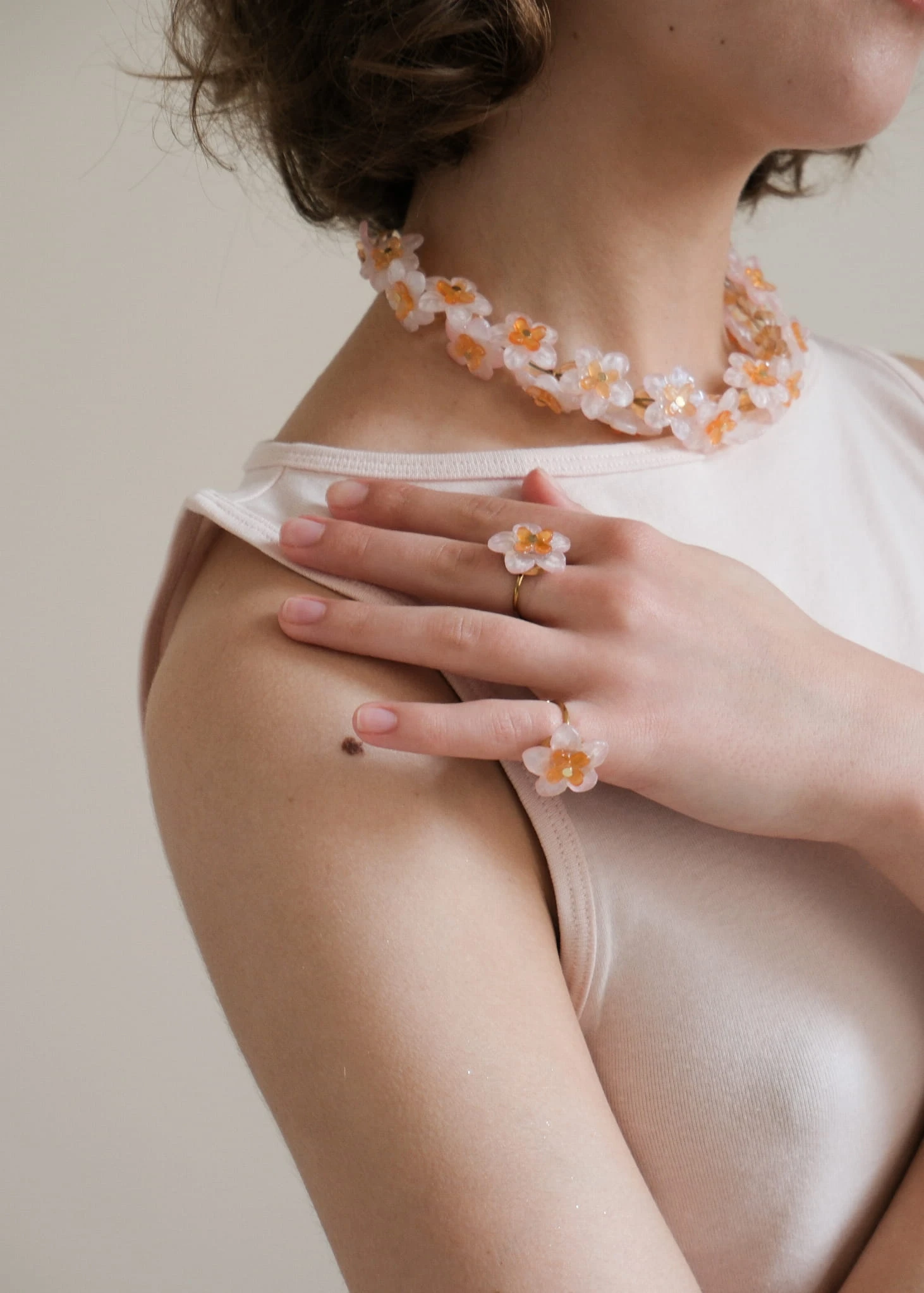 pierścionek kwiat brzoskwiniowy