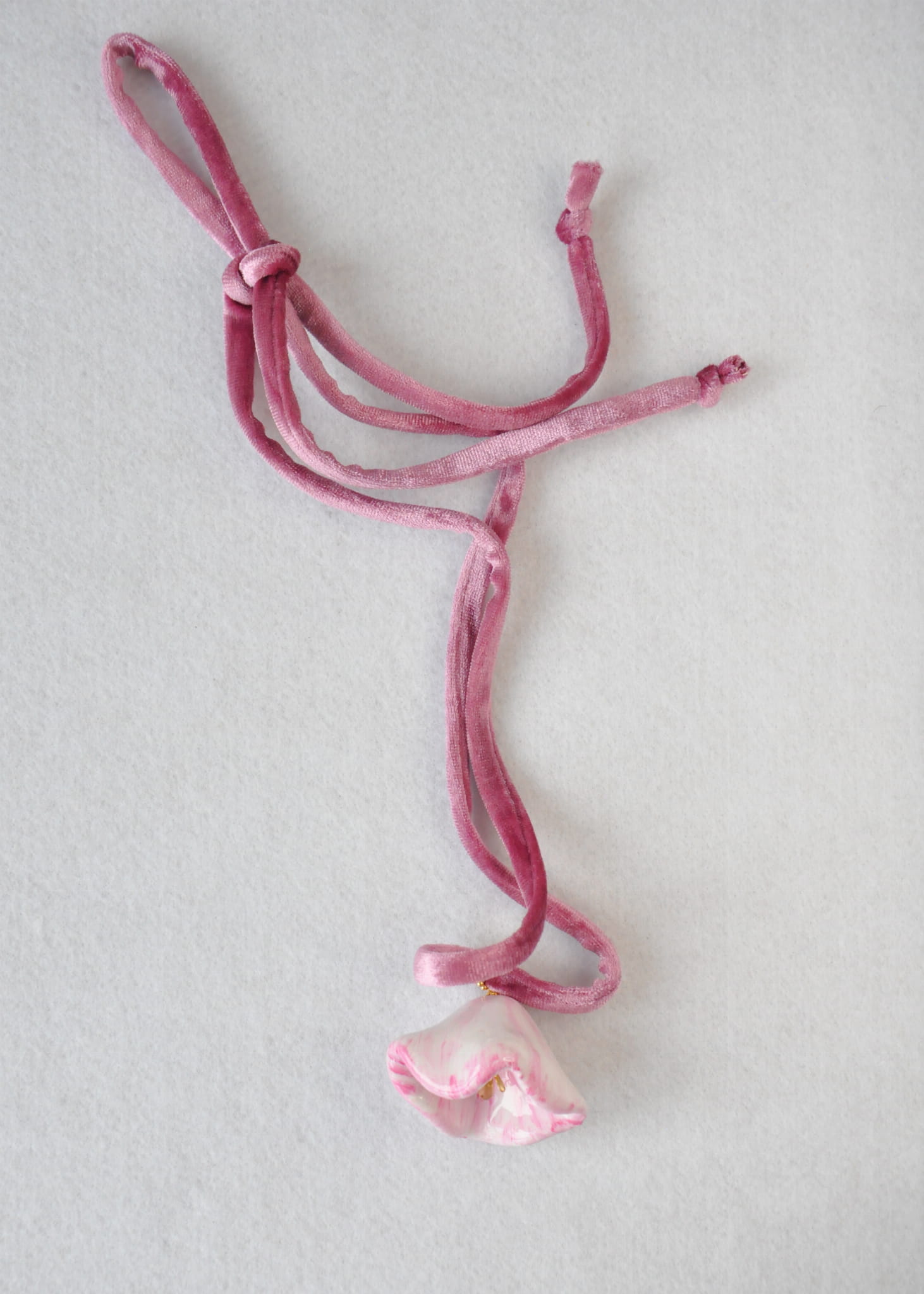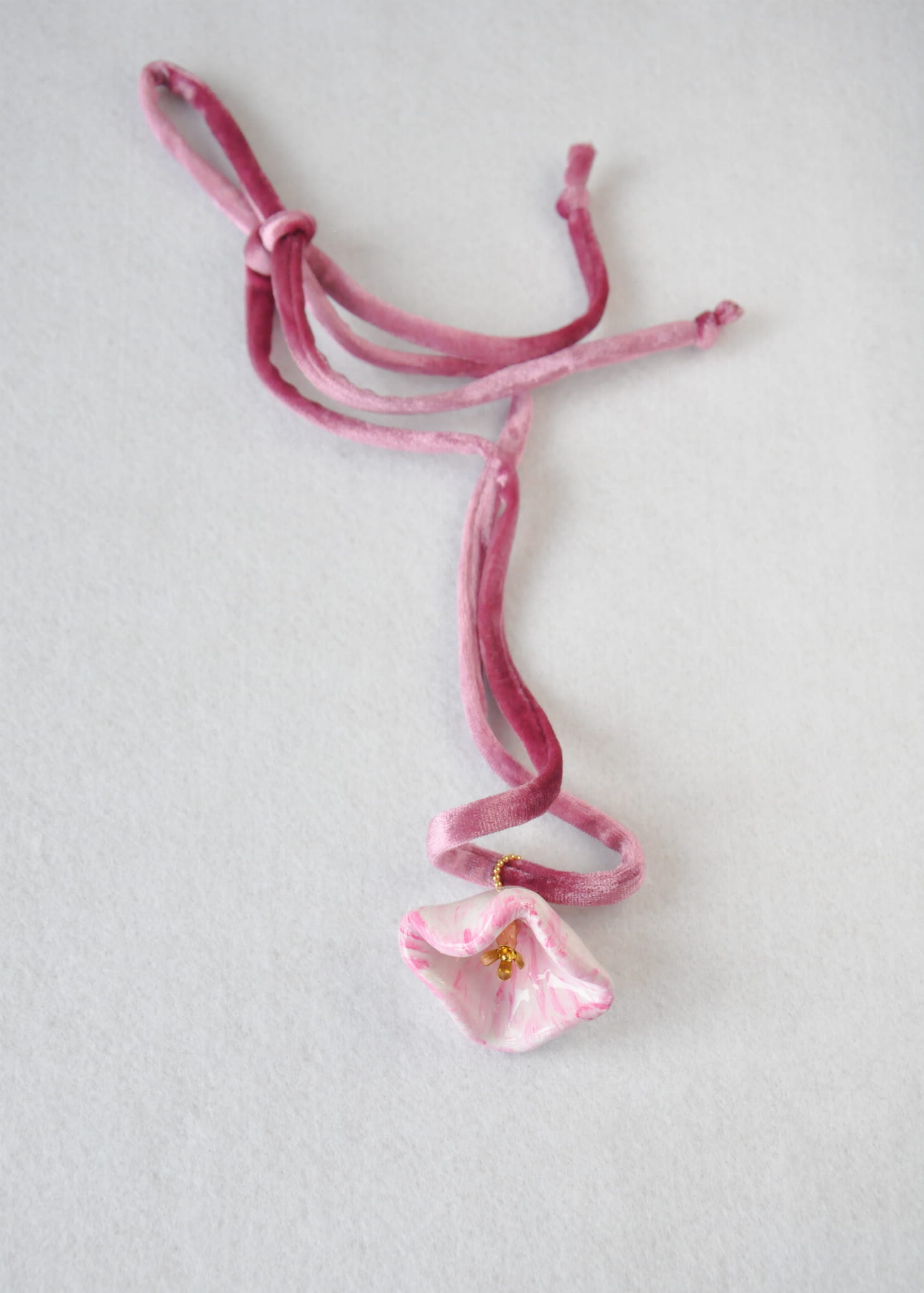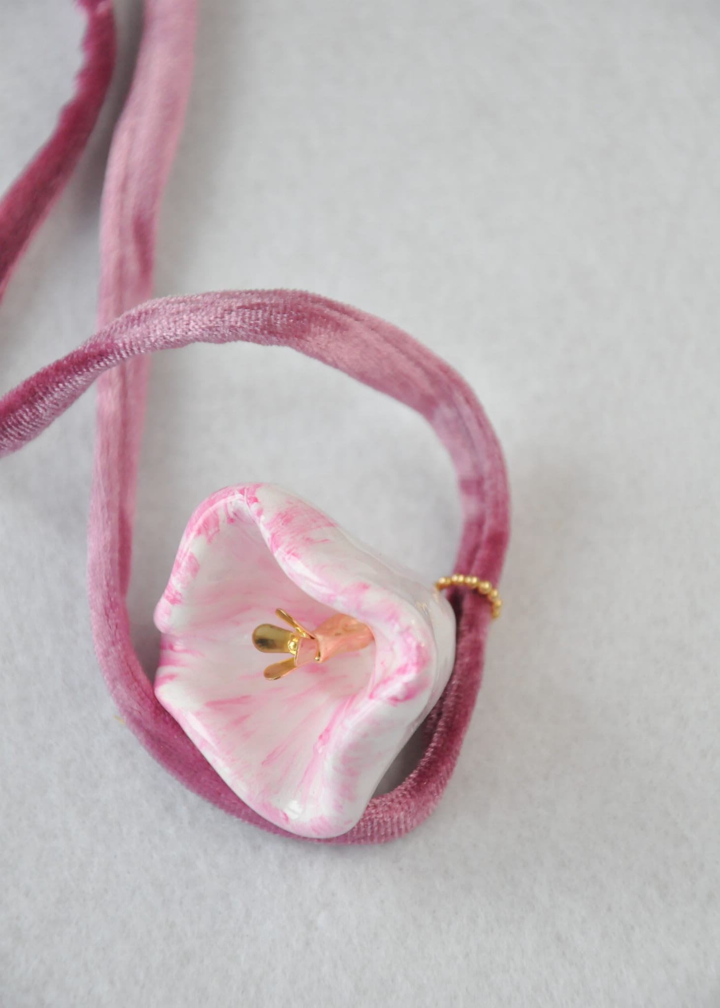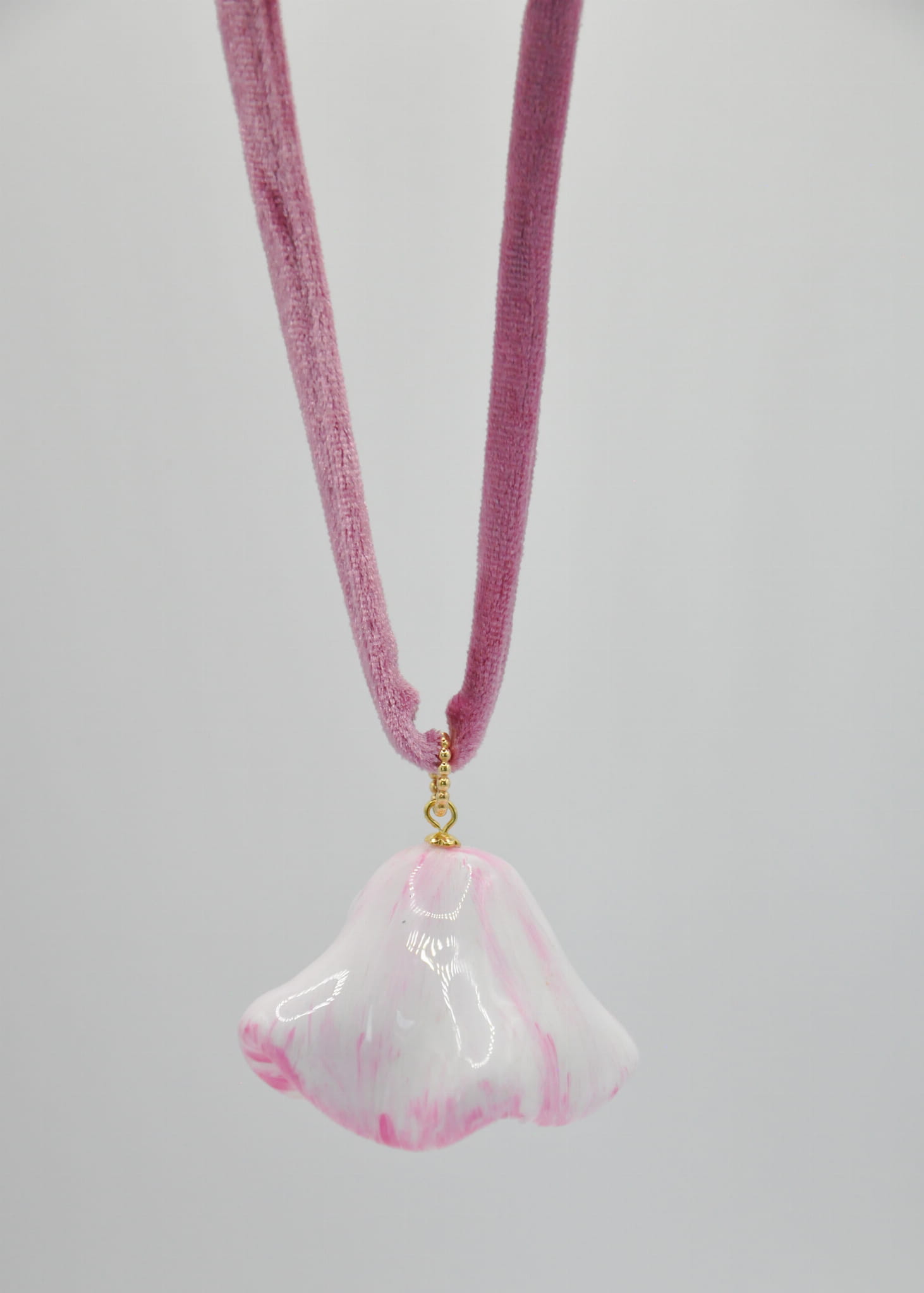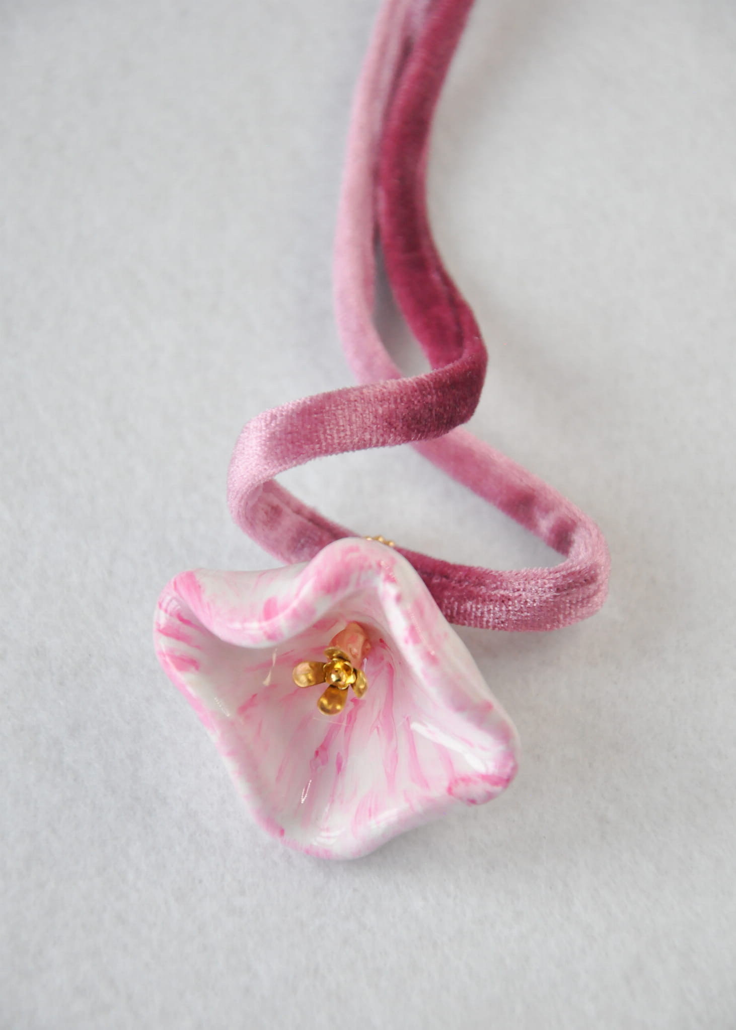 modelina, żywica, stal chirurgiczna, srebro pozłacane, sznur welurowy